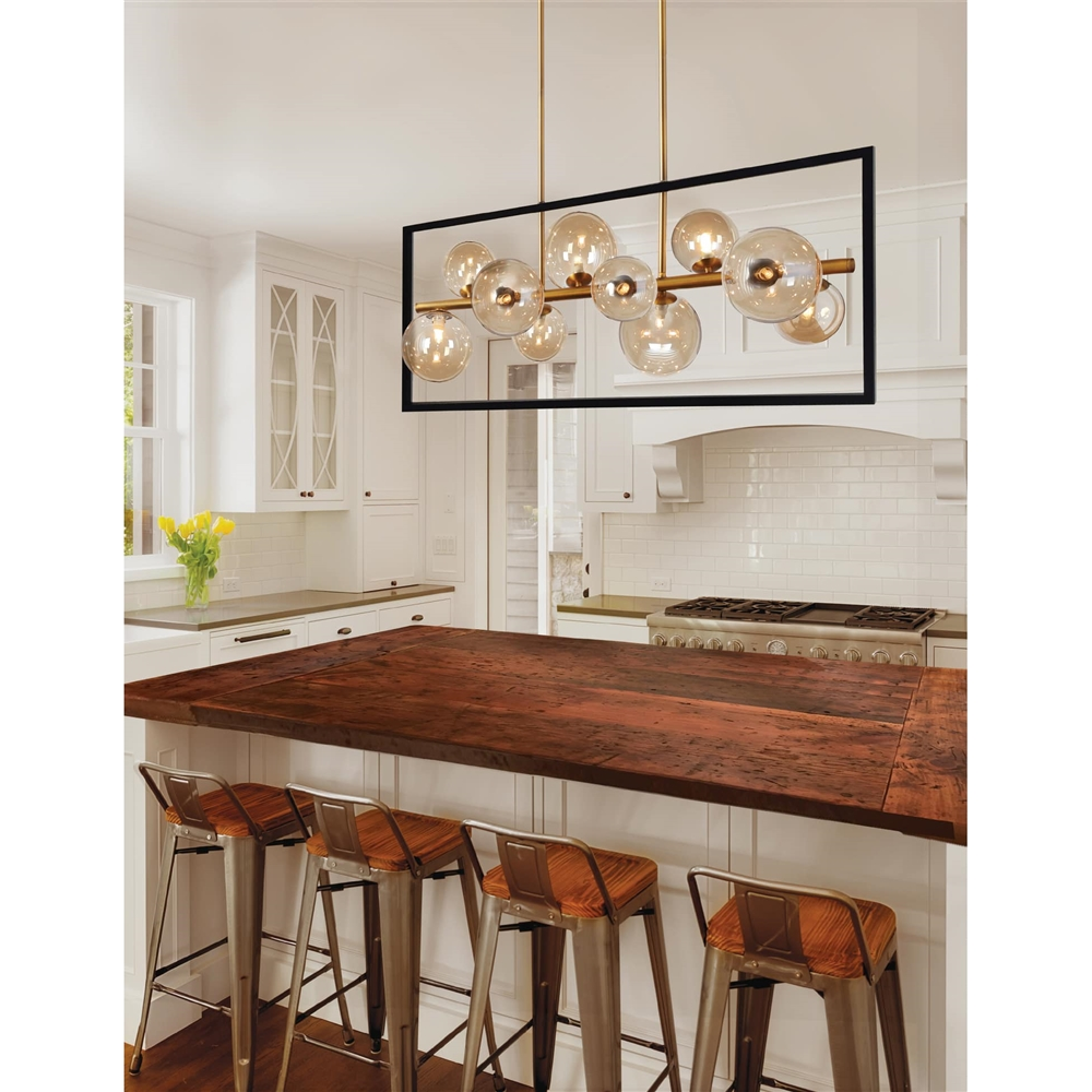 Whether commercial or residential, Dainolite will add a unique touch to any space with this 10-light horizontal pendant matte black and vintage bronze with champagne glass.