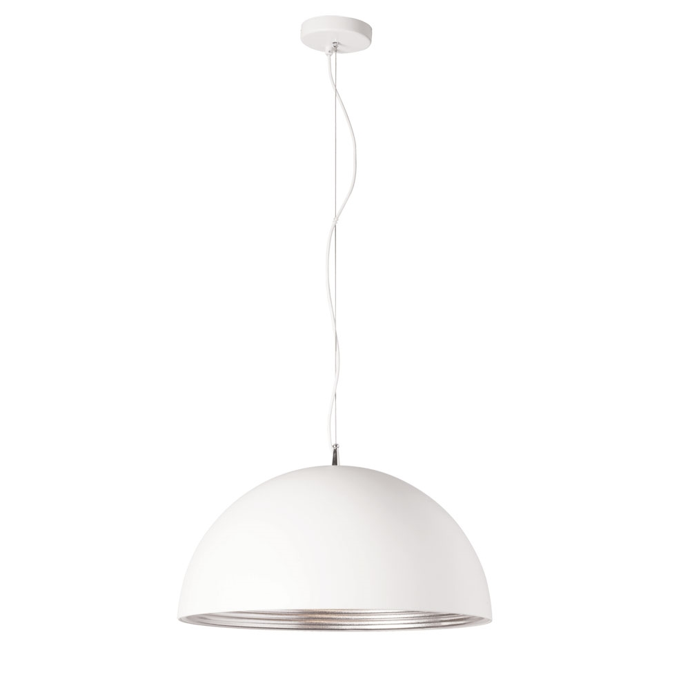 Whether commercial or residential, Dainolite will add a unique touch to any space with this 1-light pendant matte white exterior and silver interior metal dome shade.