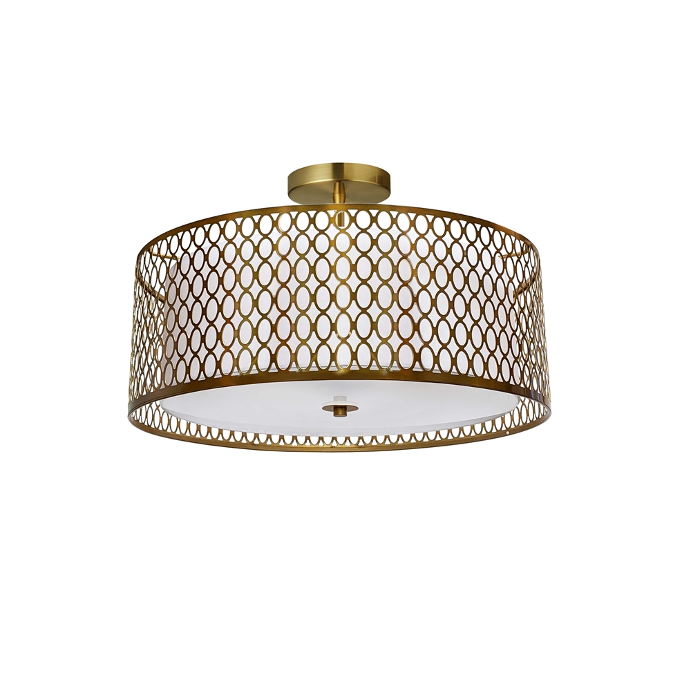 Whether commercial or residential, Dainolite will add a unique touch to any space with this 3-light semi-flush light with an aged brass finish and a white shade.